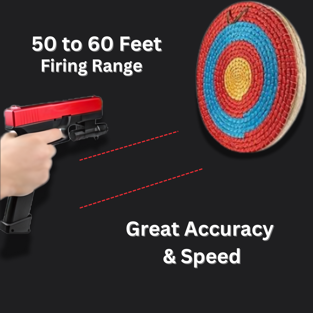 .Automatic Water Balls Splatter Toy: Pull the trigger, and the Water Balls ammo set will fast shoot automatically. The gel balls will fly out at a distance of about 25 feet. 1pcs High-capacity magazine can load 150 water balls which lets you continuously play as many battles as you want.