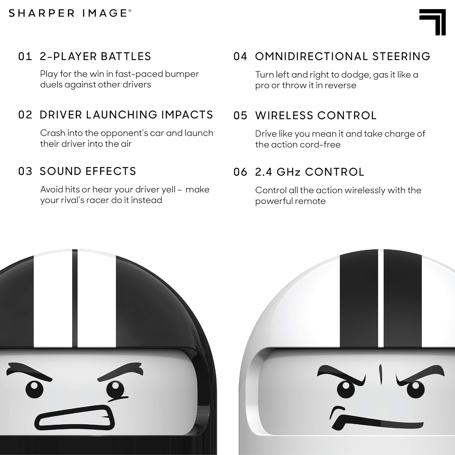 - ✔ RC BUMPER CARS: Take your road rage to the (mini) streets with these RC Bumper Cars from Sharper Image!; ✔ PLAY HEAD TO HEAD: Battle it out with a friend & play for the win in fast-paced bumper duels. The set comes with two cars and two remotes for exciting 2-player action!